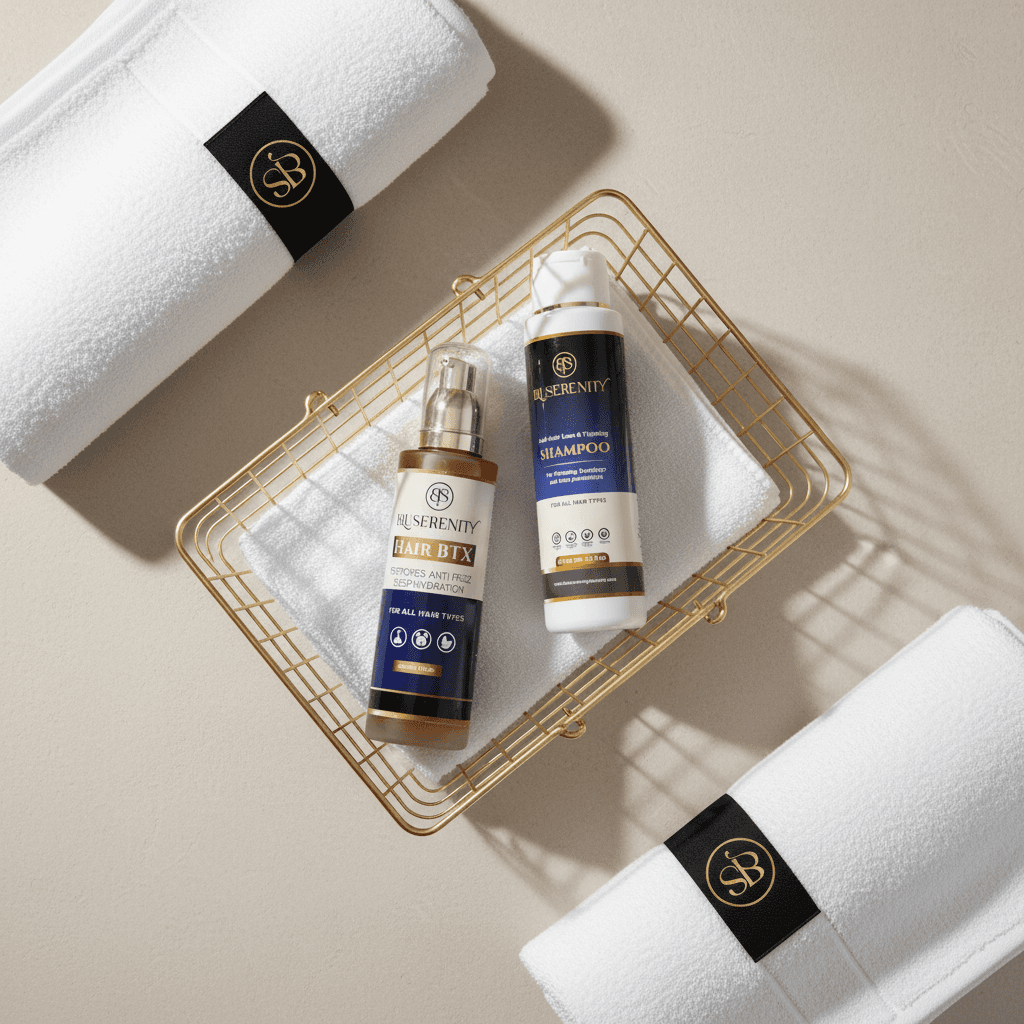 Comenzamos diseñando un logotipo que representara elegancia, pureza y renovación. El símbolo circular con las iniciales BS evoca armonía y continuidad, reflejando el ciclo de transformación capilar que la marca promueve. La paleta: azul profundo, blanco perlado y dorado metálico, transmite serenidad, confianza y lujo accesible. Cada etiqueta fue diseñada con un enfoque editorial, buscando que los productos destacaran en estantería y comunicaran profesionalismo al instante. En redes sociales, desarrollamos una dirección visual coherente con esta identidad: limpia, equilibrada, emocional y siempre centrada en la mujer real detrás del cabello.
